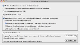 Per semplificare la protezione del tuo Mac, puoi anche aggiungere la casella di ricerca Secure di McAfee SiteAdvisor alla barra inferiore del browser. L'elenco dei siti non dannosi è personalizzabile: se un URL viene segnalato come non sicuro, ma tu ritieni sia invece innocuo, puoi aggiungerlo ad una lista personale di URL "puliti". Nonostante la lista di pagine non sicure non venga aggiornata molto frequentemente (ed è questa la pecca di McAfee SiteAdvisor), la funzione è molto utile. Consigliato.
